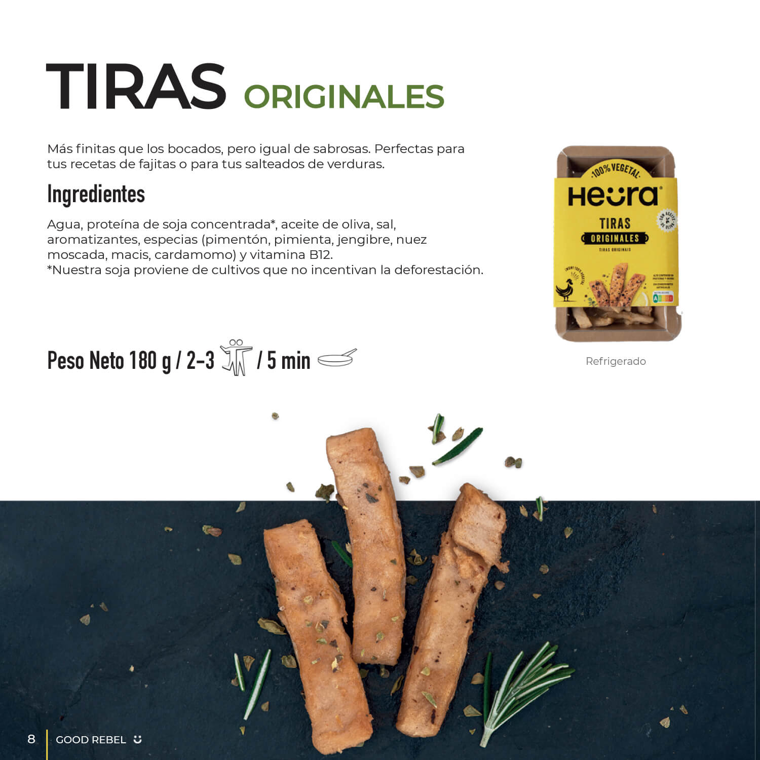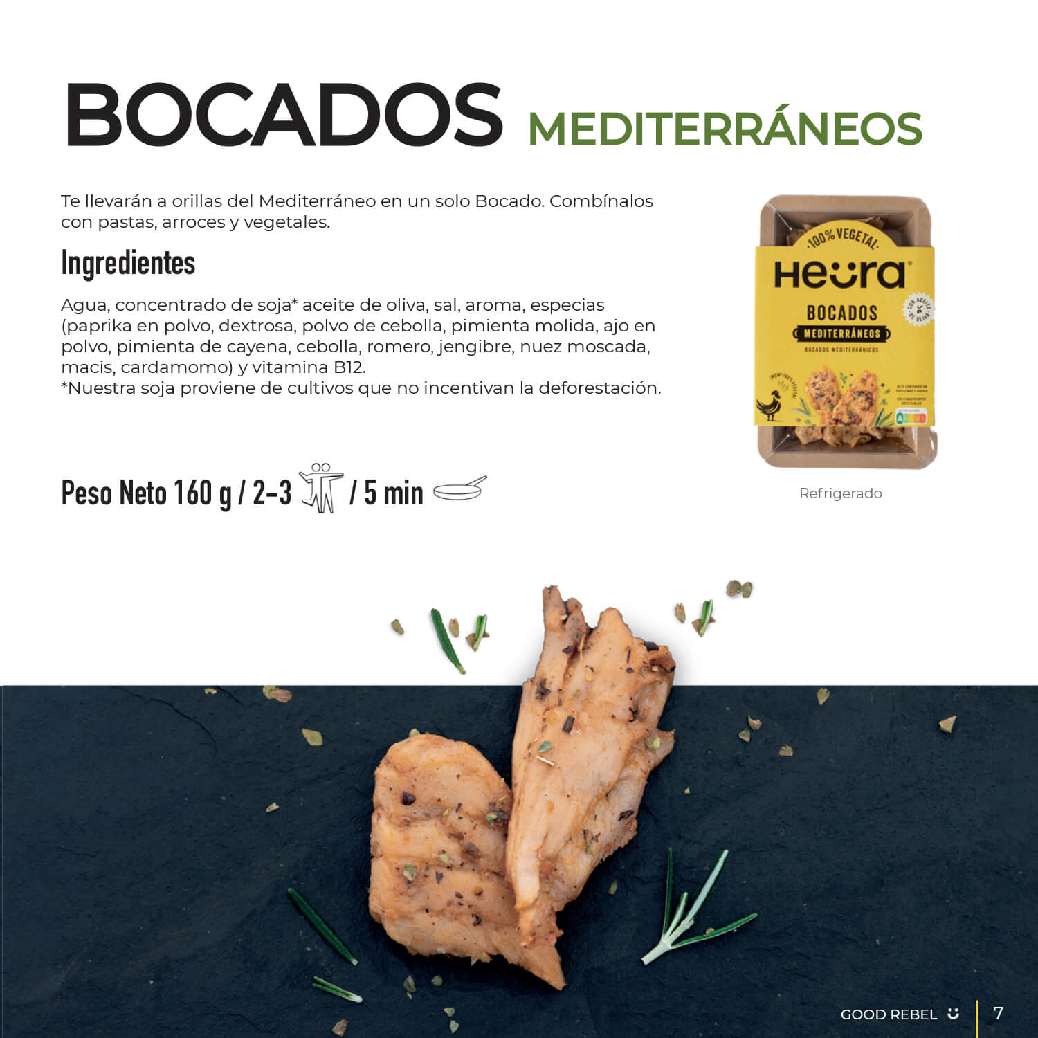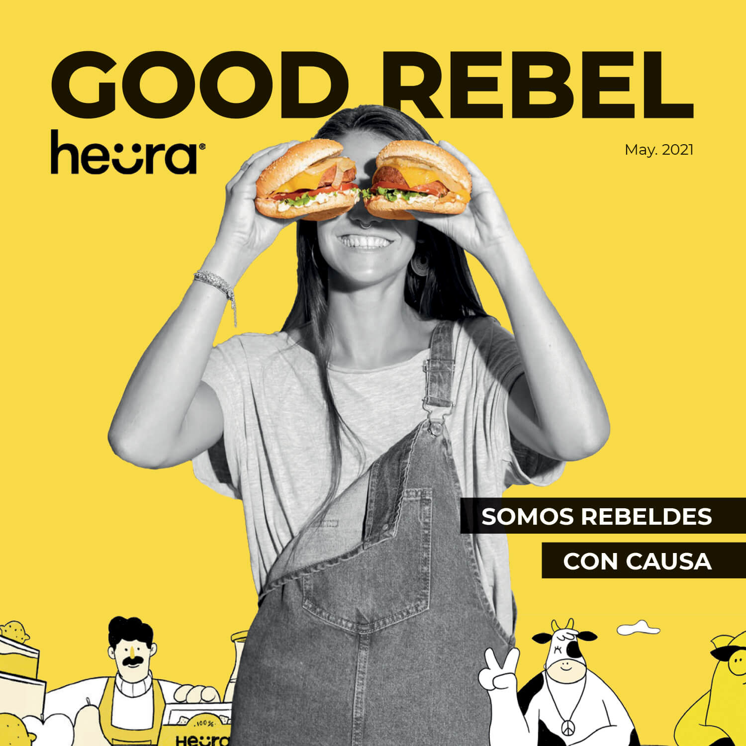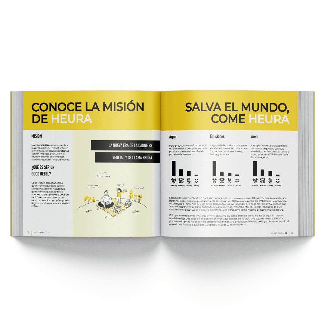 Following the close and friendly style of the brand, an editorial publication, “Good Rebel”, has been developed. It includes information about Heura, the environment and recipes with its products. To make the magazine visually appealing, we took real photographs of the food and we created icons.