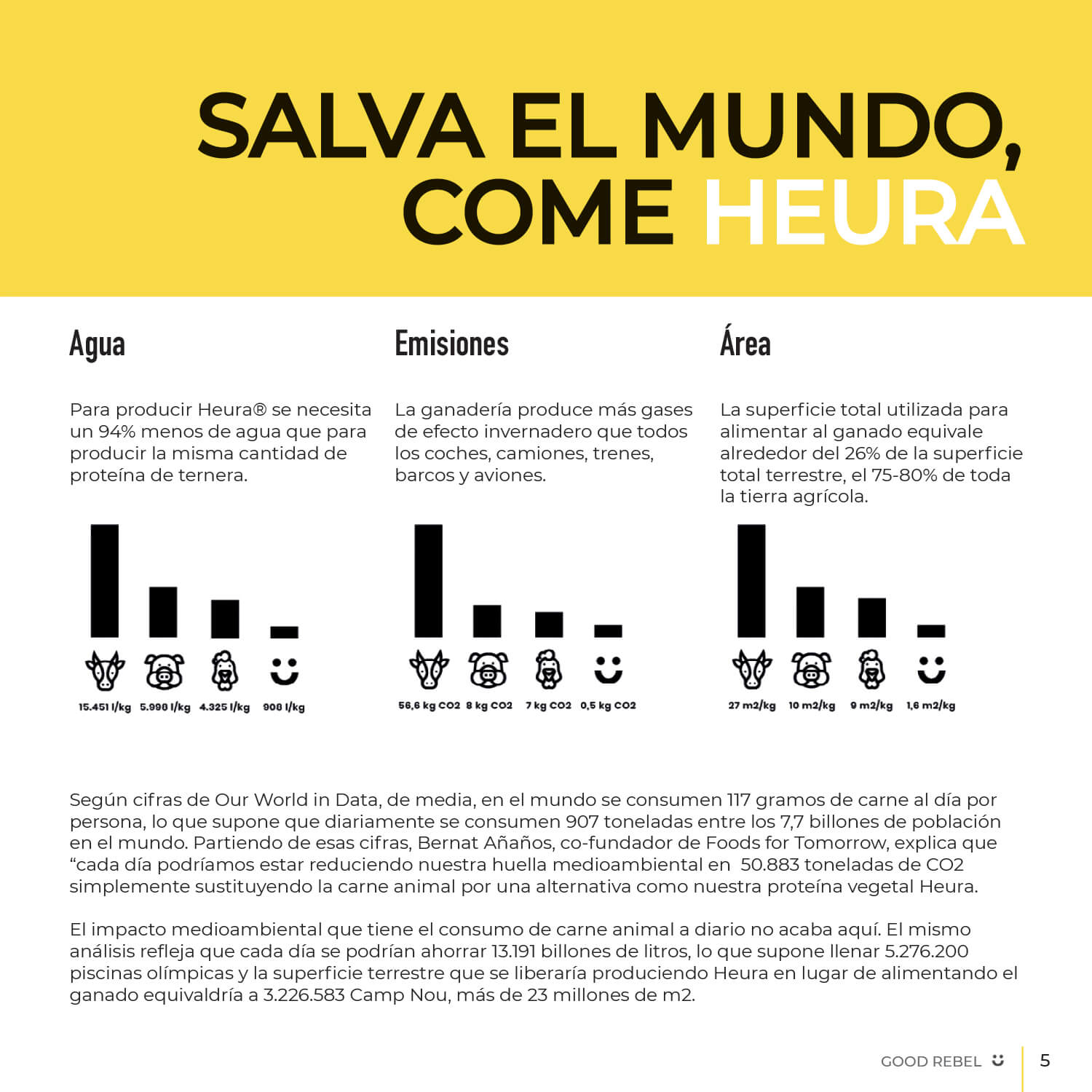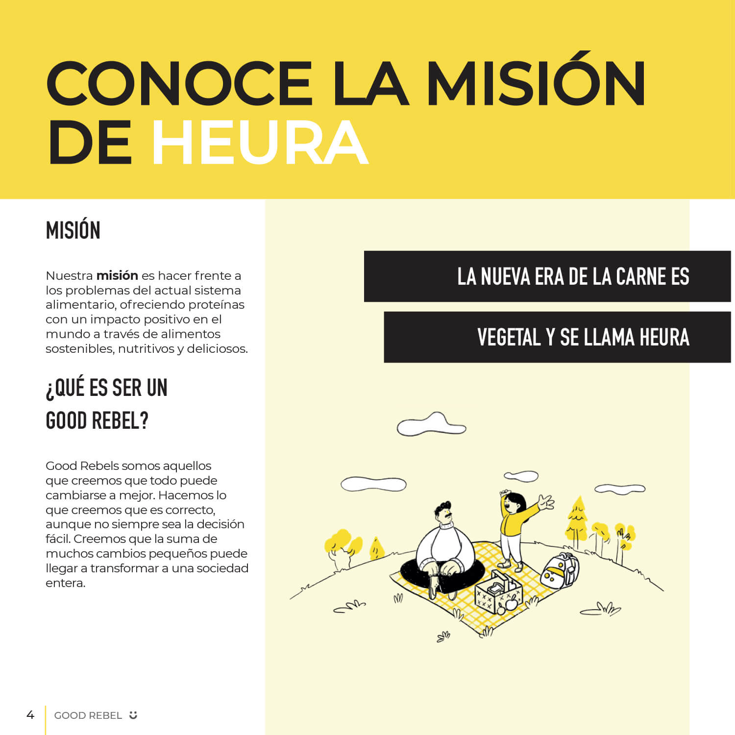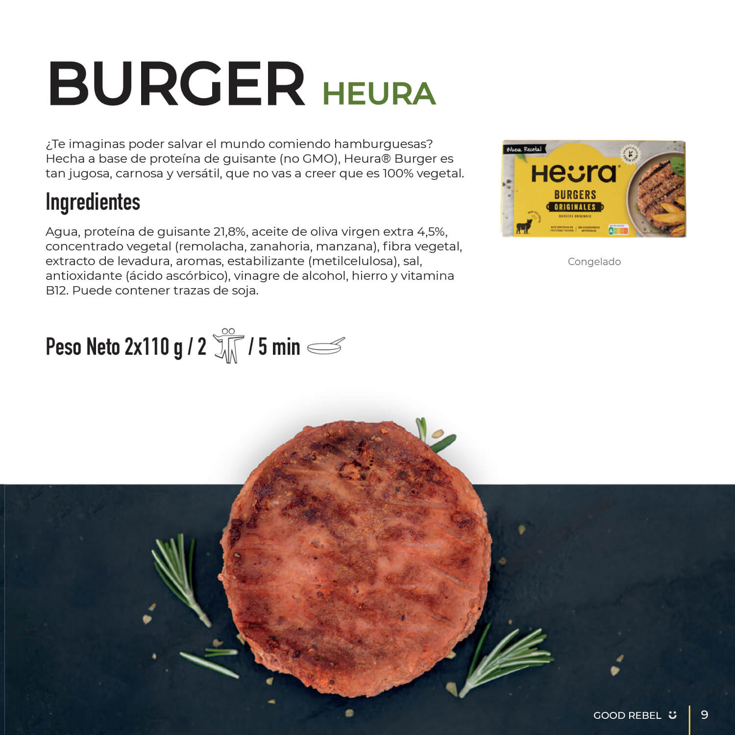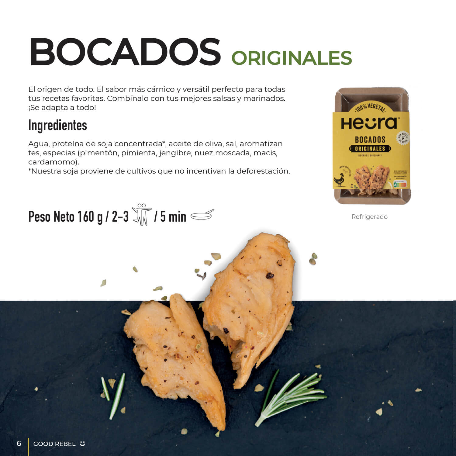 Following the close and friendly style of the brand, an editorial publication, “Good Rebel”, has been developed. It includes information about Heura, the environment and recipes with its products. To make the magazine visually appealing, we took real photographs of the food and we created icons.